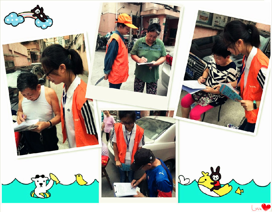 已是秋分时节,空气中已是带有凉意。但却挥不走我们满载的热情与激动,远远的走来一位中年大叔,我们走上前,在获得对方同意后,开始调查问卷。渐渐的,周围来了几位围观的居民。我们趁热打铁,一边给每位围观的居民都发了一份调查问卷,一边把小礼品塞到他们手里。很快,我们收到了一打完成的问卷。