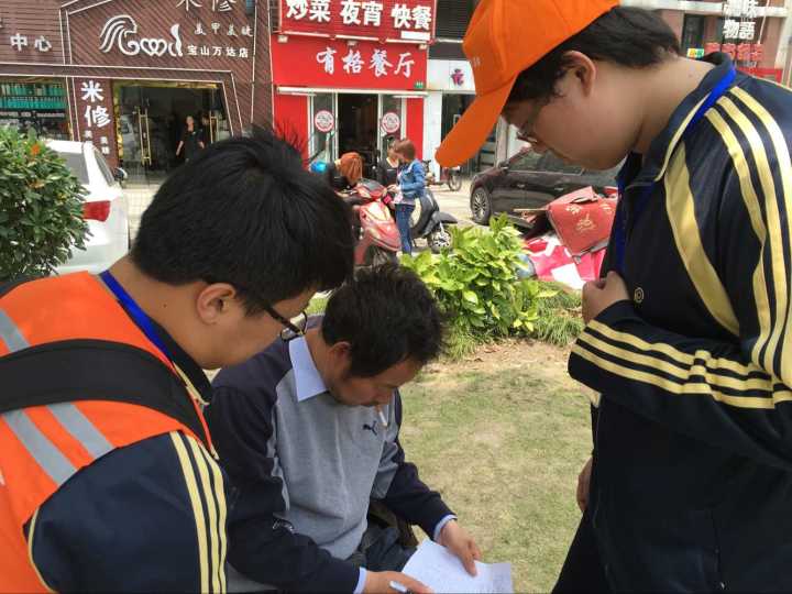 下午一点,同学们整装待发。分别前往宝山的各个小区街道,对当地居民进行社区安全感满意度的调查问卷活动。