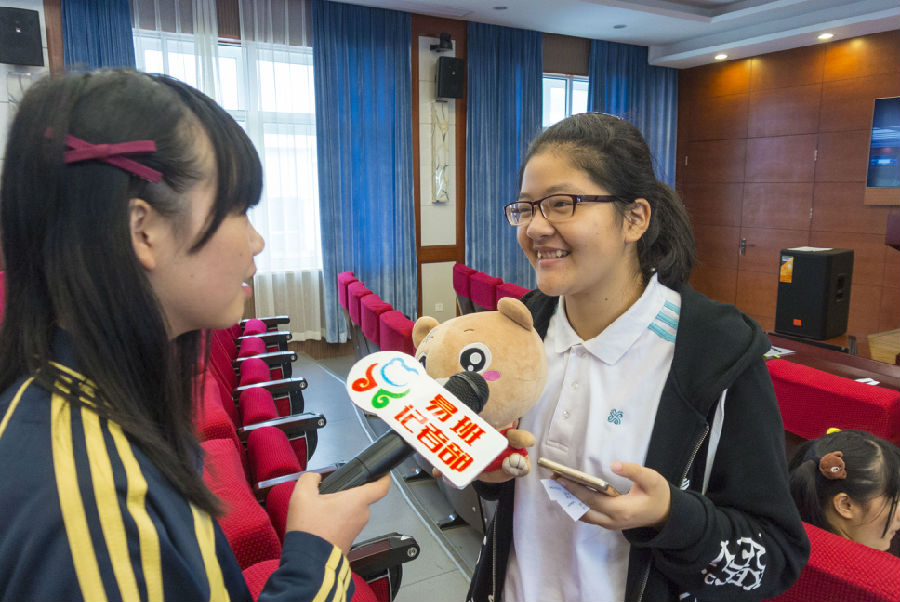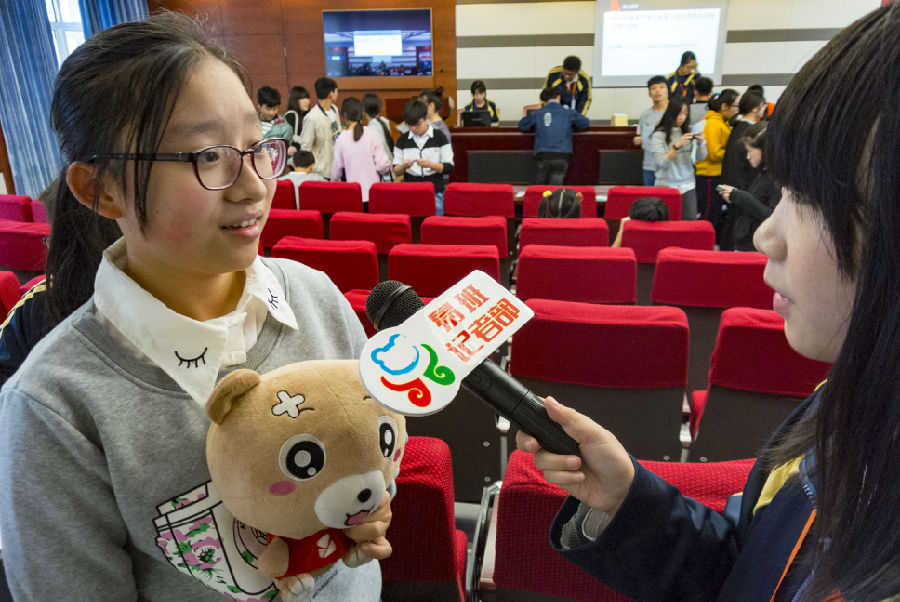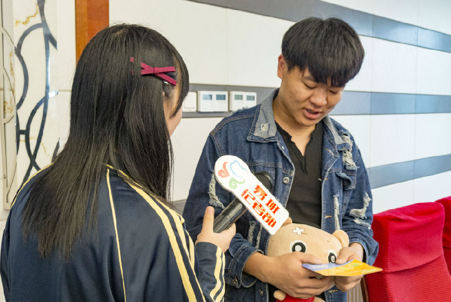 四楼阶梯教室里,采访小队采访到了4位新生,小记者询问他们对于这次活动有哪些可以改进的地方时他们轮流说出了各自的看法,他们认为应该多增加一些互动性强的活动,在采访结束时他们谈到很期待易班下次活动。