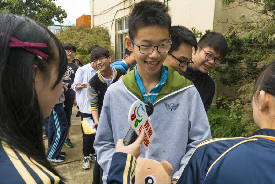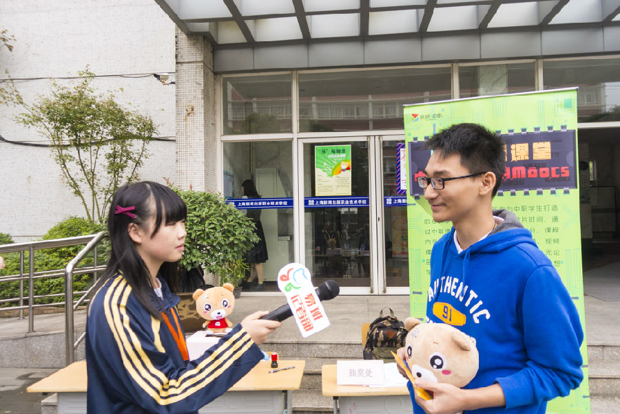 图书馆门口,采访小队采访到了2位完成了“方言活动”的新生,在采访过程中新生们纷纷表示这环节的活动最有趣,希望在以后的大型活动中能够再次参与。