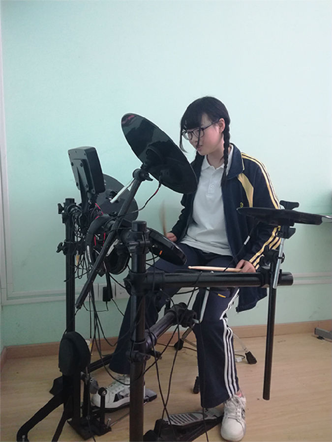 刚踏上楼梯,便听到了屋内传来的阵阵鼓声,让我们不禁疑惑:还没到上课时间,怎么已经开始训练了呢?而走进教室才发现,原来是同学们在等待老师的间隙,先自行练习了起来。