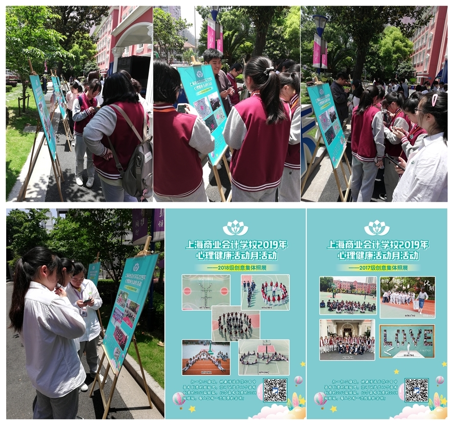 在准备了近一个月时间后,5月22日中午,我校于操场展开了“我的班级我的家”创意集体照评选活动,展板上展示了全体17、18级各个班级的创意集体照,扫描展板中的二维码即可为心目中最有创意的集体照进行网上投票了。炎炎夏日没有减轻同学们参与活动的热情,现场活动氛围热烈,有的同学目不转睛地盯着展板,神情认真,像是在观赏展览里的画作,有的同学三两结群小声讨论着投票的对象,有些同学站在展板前积极地向路过的老师和其他班级同学介绍自己班级集体照的创作理念,有些同学商量赶快转发朋友圈发动亲友投票……本次投票活动一直持续到5月26日结束,最终会在2017级评选出11个班级、2018级评选出12个班级分别获一、二、三等奖或鼓励奖。