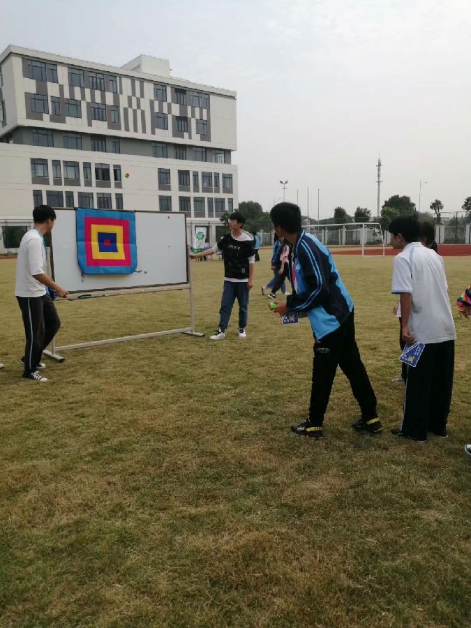 线下游戏中,“游戏粘板”是场内学生最爱的游戏项目,将软球投中粘板上的各个色块,累计一定分数即可赢得印章。同学们掷球的精准度超乎意料的高,不止一人满分通过。我站策划的游戏“有文有武”,游戏“说着倒要我”的通关条件是将一句倒写的简短口号正着读出。短时间内,不少同学思路打结后读出了许多四不像的话语,总能引的周围荡起一阵阵笑声。说过“文”再论“武”,“射圾英雄”的游戏名掺了几分武侠的意味,参与游戏的“年轻英雄”们需要答对问题把足球踢进指定的区域即为通过。在搭错了问题后,大多学生也在记下正确答案后背对足球框成功射门。