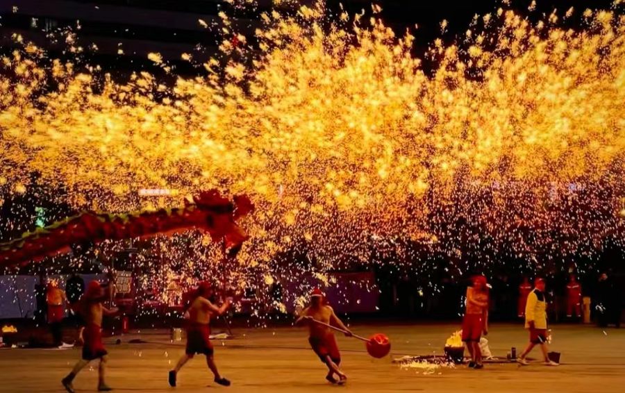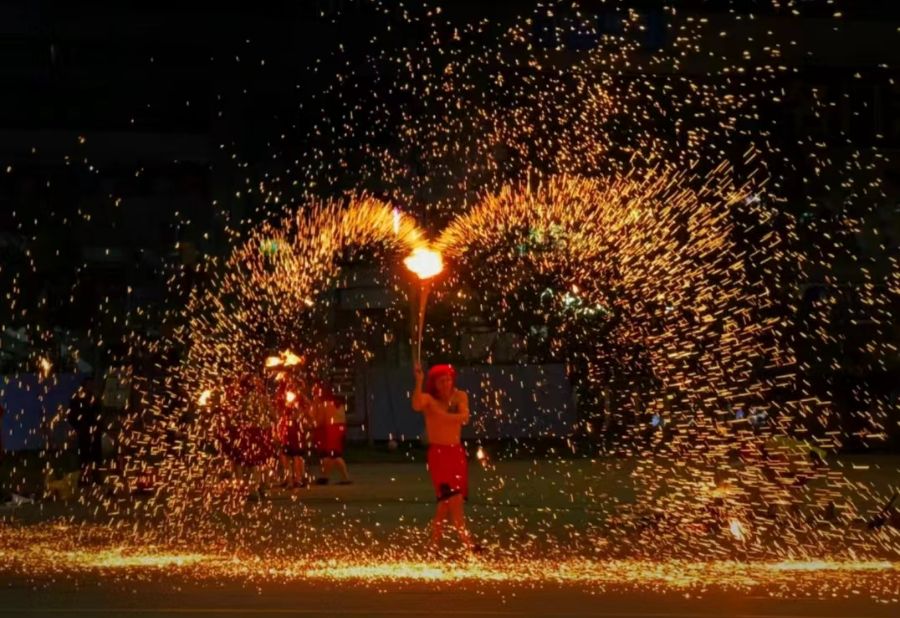 “铁水打花”又叫打铁花,是流传于豫晋地区民间一种独特的花会活动形式,被视为一种古老的烟火。一般在正月十四、十五、十六的晚上即每年的元宵节前后进行表演,以祈求国泰民安、五谷丰登,亦有祥和喜庆之意。