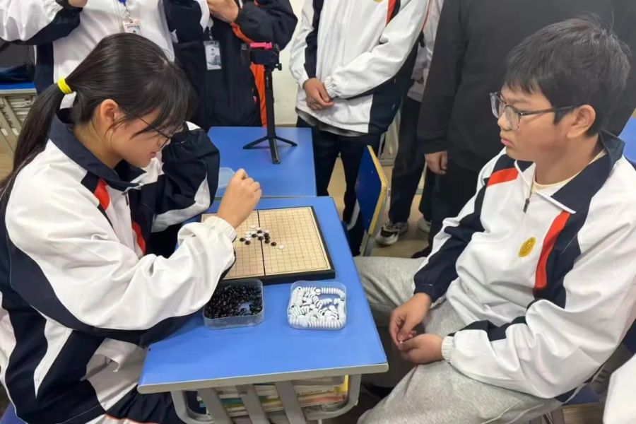 赛场一片安静,选手们紧盯棋盘。一方暗布活二、活三的埋伏,另一方及时堵截;残局阶段,选手精准抓住冲四杀棋的时机,每步落子都尽显缜密的攻防技巧。