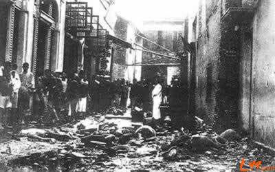 1925年6月23日,英国海军陆战队在广东朝游行中的中国老百姓突然开枪、开炮,当场打死59人,重伤172人,轻伤者无数。
