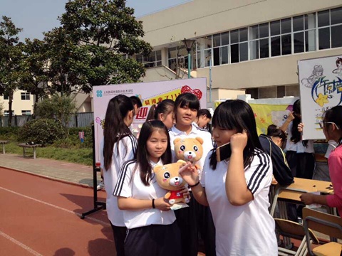 游戏火热进行中,不少新同学在参与的同时,也喜欢上了我们呆萌可爱的易班熊,与它合影留念。