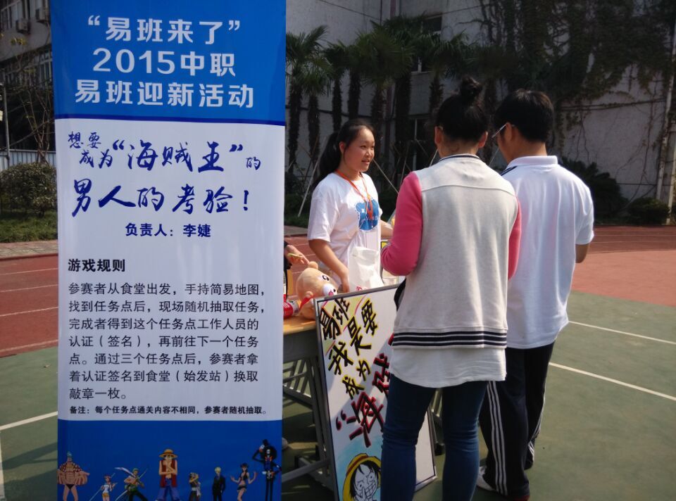 两个月的筹划,4个月的等待,是否得到了你的青睐?2015年10月16日,易班游园会终于开展,这个艳阳高照,秋风送爽的日子里。为了使15级的新同学们更快的了解易班,参与易班,与我们一起玩转易班!我们邀请了不少14级的志愿者,热心肠的他们一口答应,前来帮忙。